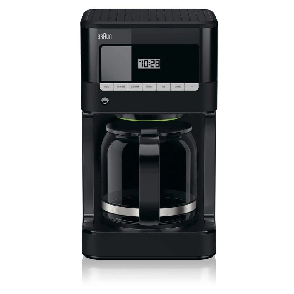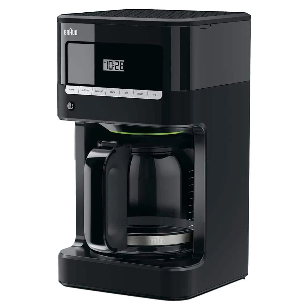 Braun’s BrewSense 12-Cup Drip Coffee Maker features a glass FlavorCarafe that seals in the fresh flavor by minimizing air exposure. Each satisfying cup begins with Braun’s unique PureFlavor system to ensure your coffee is made at the right temperature and brewing time. An automatic programmable 24-hour timer means you won’t have to wait to enjoy that first sip the moment you want it. And the anti-drip system allows you to pour anytime during the brewing cycle. Choose “regular” or “bold” on the brew strength selector to customize your coffee just the way you like it. The Keep Warm plate has an adjustable temperature control. Plus, the Braun gold-tone filter, unlike paper, enhances the flavor of your coffee by allowing essential oils to reach your cup. In addition, a “CLEAN” warning will illuminate when it’s time to descale, so the best coffee flavor can be maintained. The BrewSense’s elegant design features a premium display with LED indicators and easy-to-read buttons, convenient cord storage, smaller footprint and lower profile. And the sleek black finish will look stunning in any kitchen. With the BrewSense, you know you’re going to have a satisfying cup of savory goodness time after time.
