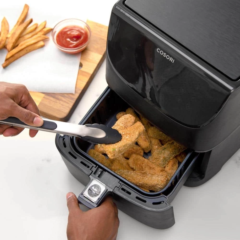 - COOKING FASTER – Cooking time is faster than conventional oven, but with crispier and tastier results. ETL Listed/FDA Compliant. Automatic shut off prevent overcooking, Overheat protection. With a cool touch handle & button guard to prevent accidental detachment. COSORI original air fryer accessory set is also available for sale (search for: C137-6AC)