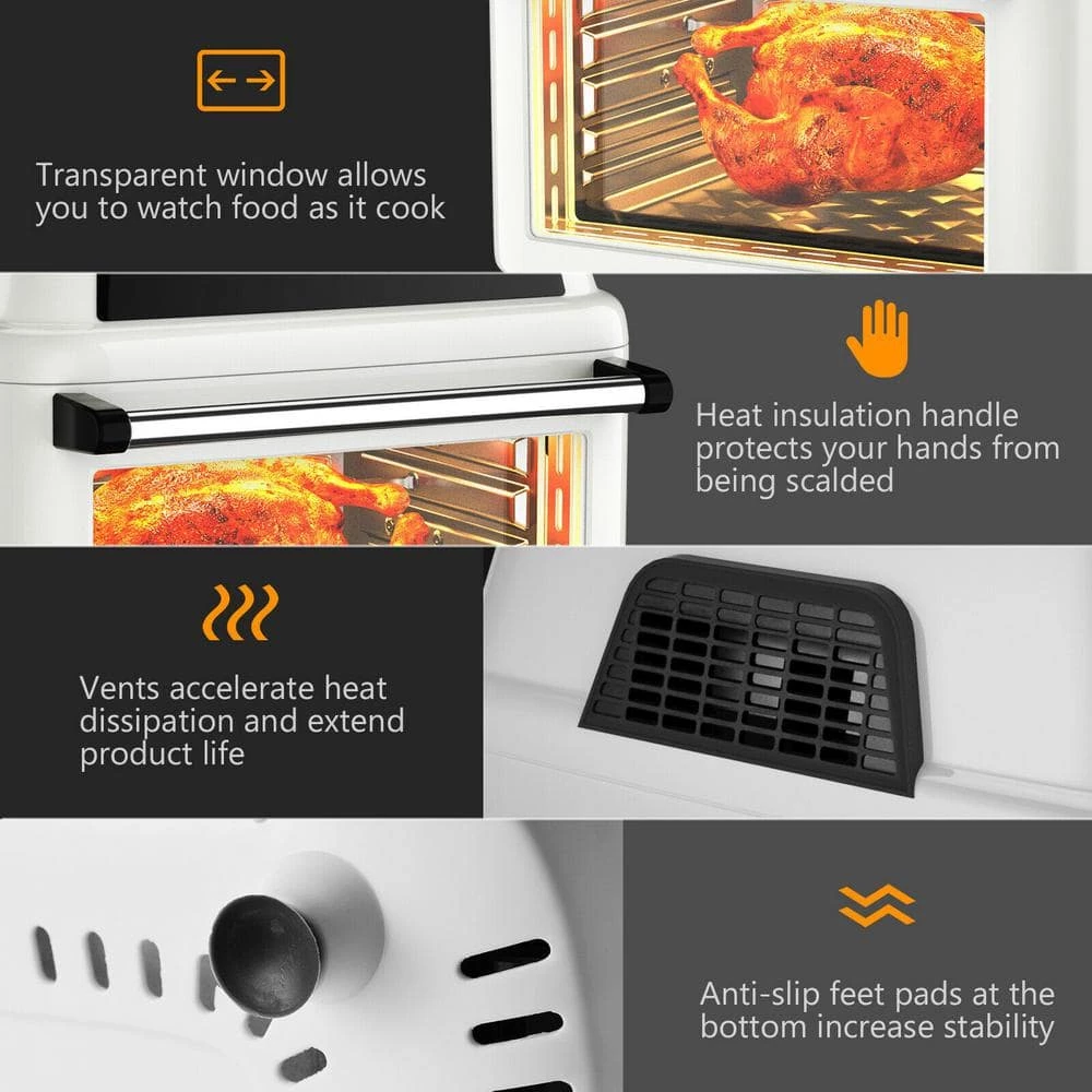 - Heat insulation handle protects your hands from being scalded Non-slip feet increase the stability of the air fryer oven