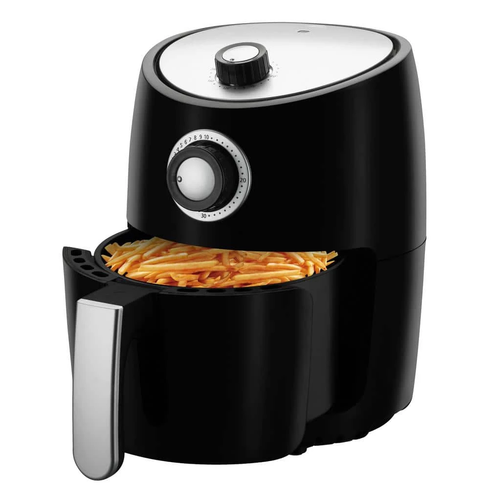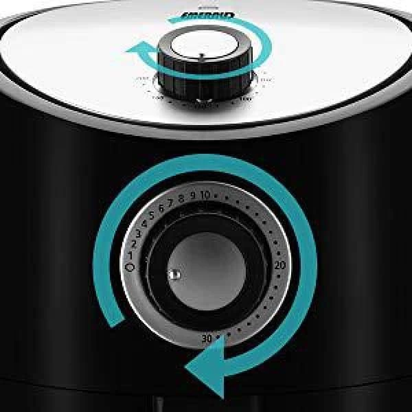 The Emerald Air Fryer provides an easy and healthy way of preparing your favorite ingredients. By using hot rapid air circulation it is able to make numerous dishes and tasty delicacies. This wonderful product is designed to heat up foods with little to no oil at all! It has a built in timer and will turn off once the timer counts down to zero.