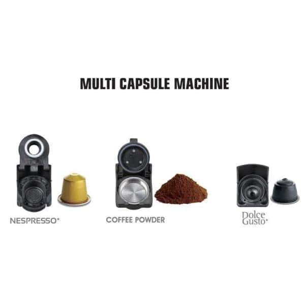 Coffee lovers will find all of their favorite features and then some with this 1-cup coffee maker. This coffee maker has the ability to make three styles of coffee, Nespresso, Dolce-Gusto and Ground Coffee. Complete with 19 bar high pressure pump and quick brew system you can customize the prefect beverage for any scenario.
