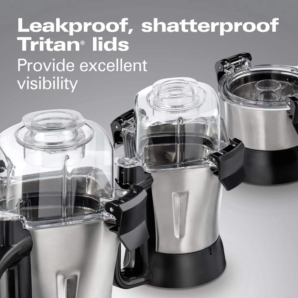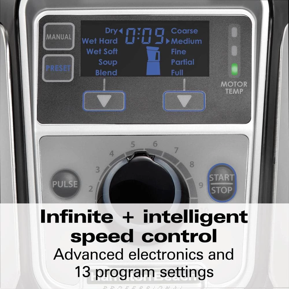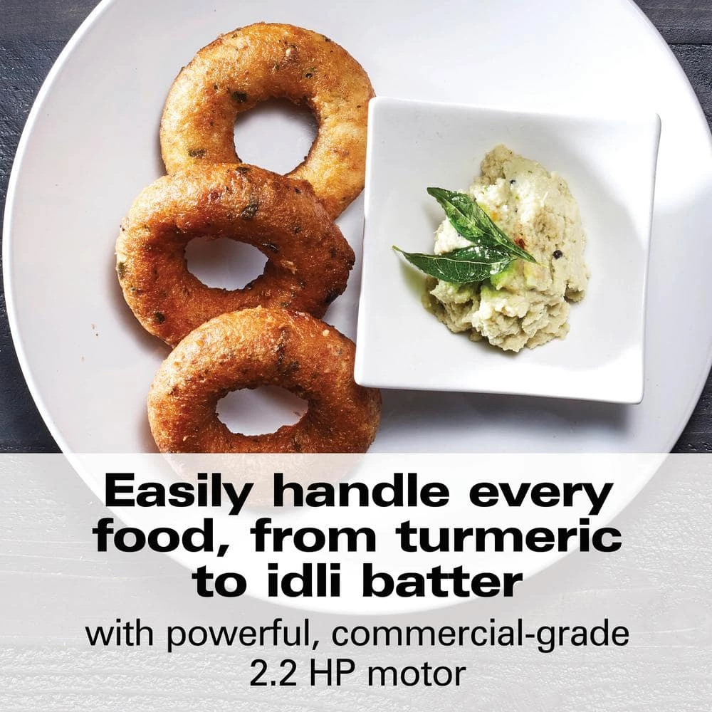 The HAMILTON BEACH PROFESSIONAL Juicer Mixer Grinder delivers superior mixing and grinding performance. Its commercial-grade, 2.2-peak horsepower motor easily handles every ingredient, from turmeric and coconut to silky idli batter. The infinite speed control takes on everything from low-speed chopping to high-speed mixing or grinding, and the intelligent speed sensor delivers precise RPMs regardless of the amount of ingredients. To eliminate guesswork, the Hamilton Beach Professional Juicer Mixer Grinder also has 13-program settings that provide consistent results for wet and dry ingredients. To accommodate various batch sizes, it comes with 3-stainless steel jars (0.5, 1 and 1.5 liter), and the 2-larger jars have square sides to ensure excellent circulation with large amounts of food. For peace of mind, the safety interlock stops the blades within 2 seconds if the lid is removed, and the durable blades are universal so they don’t need to be changed. It includes a chef-developed recipe book by Kunal Kapur so you can prepare authentic Indian dishes with confidence.