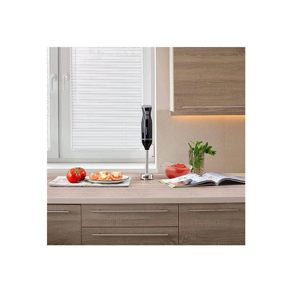 Conveniently handle all your blending needs with Holstein Housewares 2-Speed Hand Blender. Equipped with a 250W powerful yet quiet motor, this hand blender quickly purees soups, blends batters, mixes beverages, and much more. A must-have in any kitchen to aid in the preparation of fresh meals and yummy desserts.
