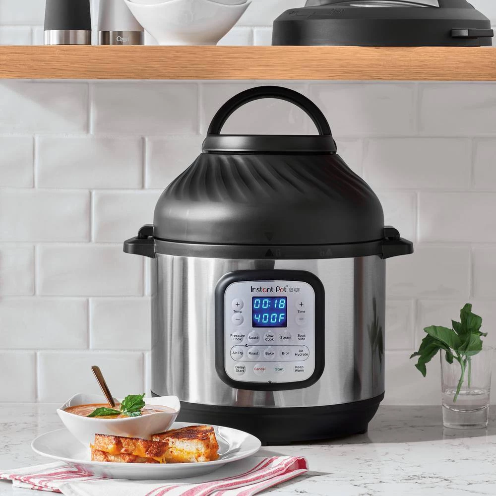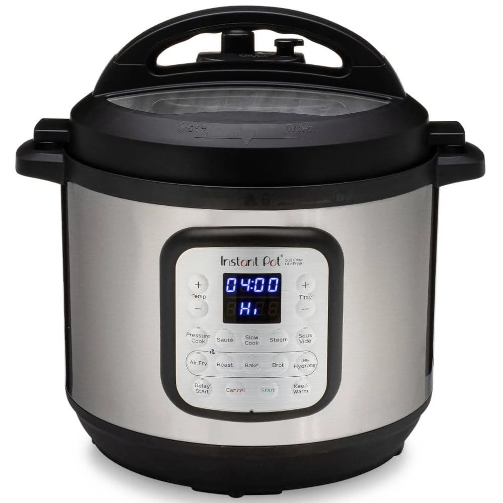 Make cooking easy with this Instant Pot duo crisp air fryer. For versatility, it serves as a pressure cooker, slow cooker, warmer, steamer and sauté pan. You can prepare family-sized meals with the 8-quart capacity.