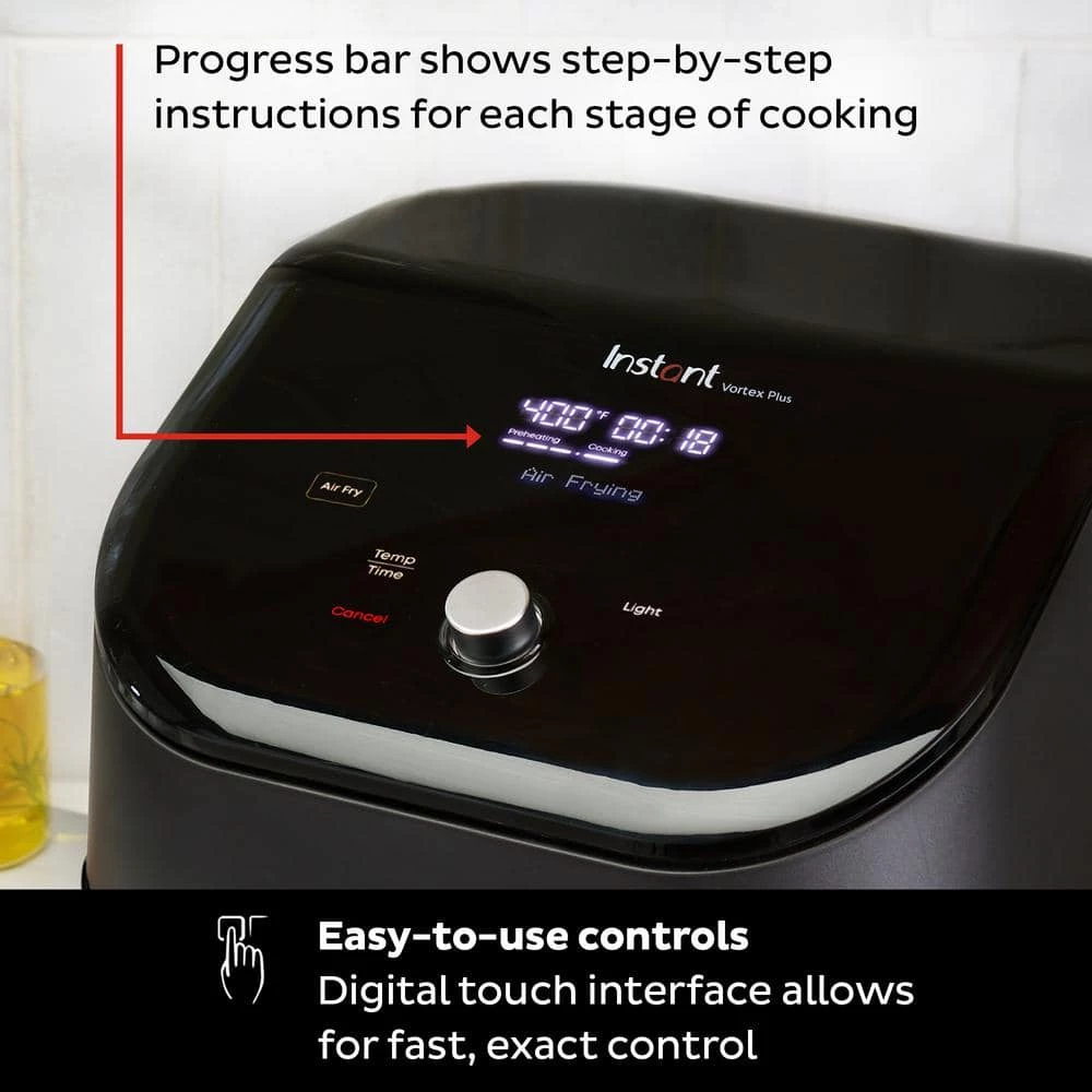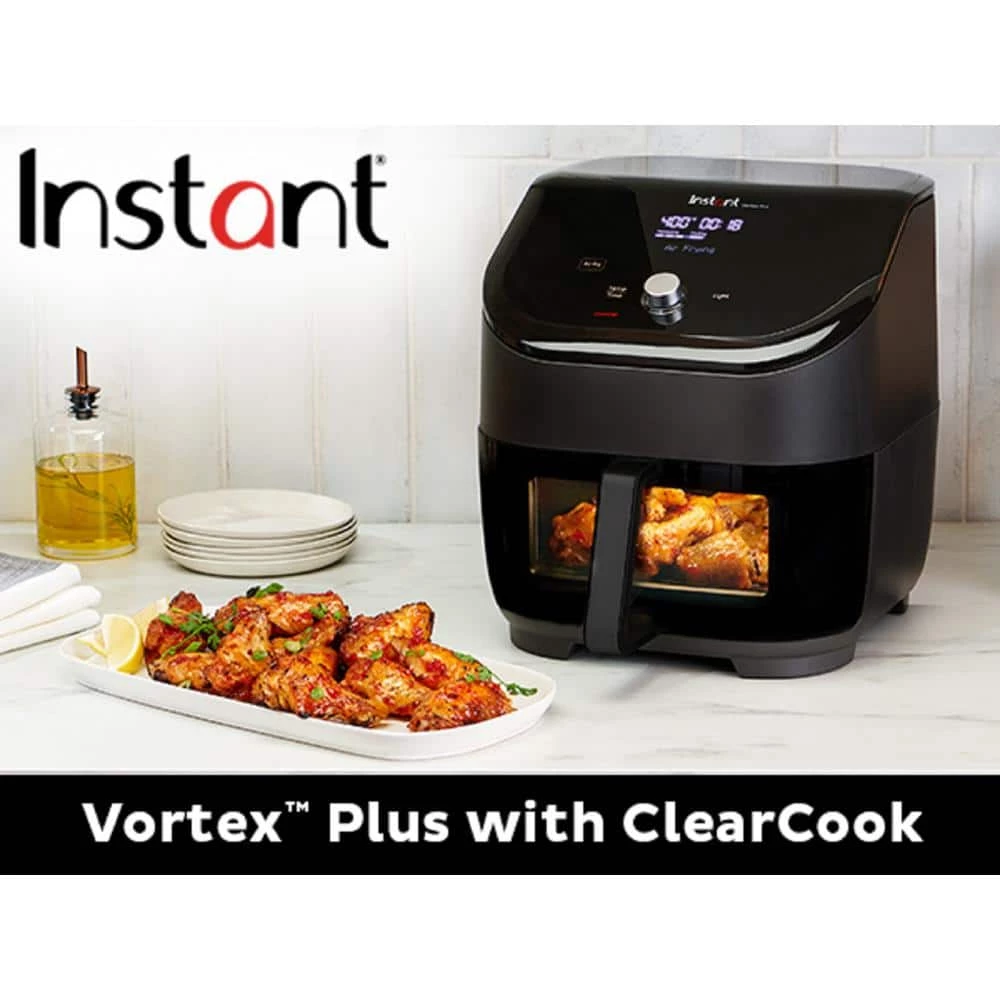 This Instant Vortex Plus has a ton of useful features, but top of the list has to be the ClearCook window. The see-through window works with a perfectly placed light inside so you can check on cooking progress without opening the basket. The EvenCrisp air flow technology delivers crispy, tender results every time with 95% less oil. 6 cooking programs give you one-touch access to easy recipes, but let you customize for yourself. And because the cooking basket and cooking trays are non-stick and dishwasher safe, clean-up is a snap.