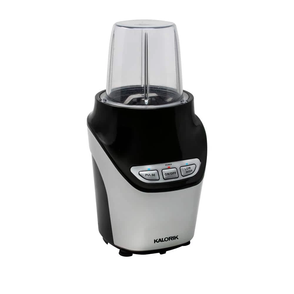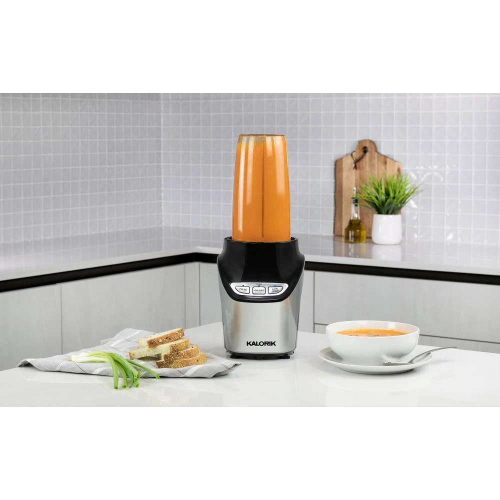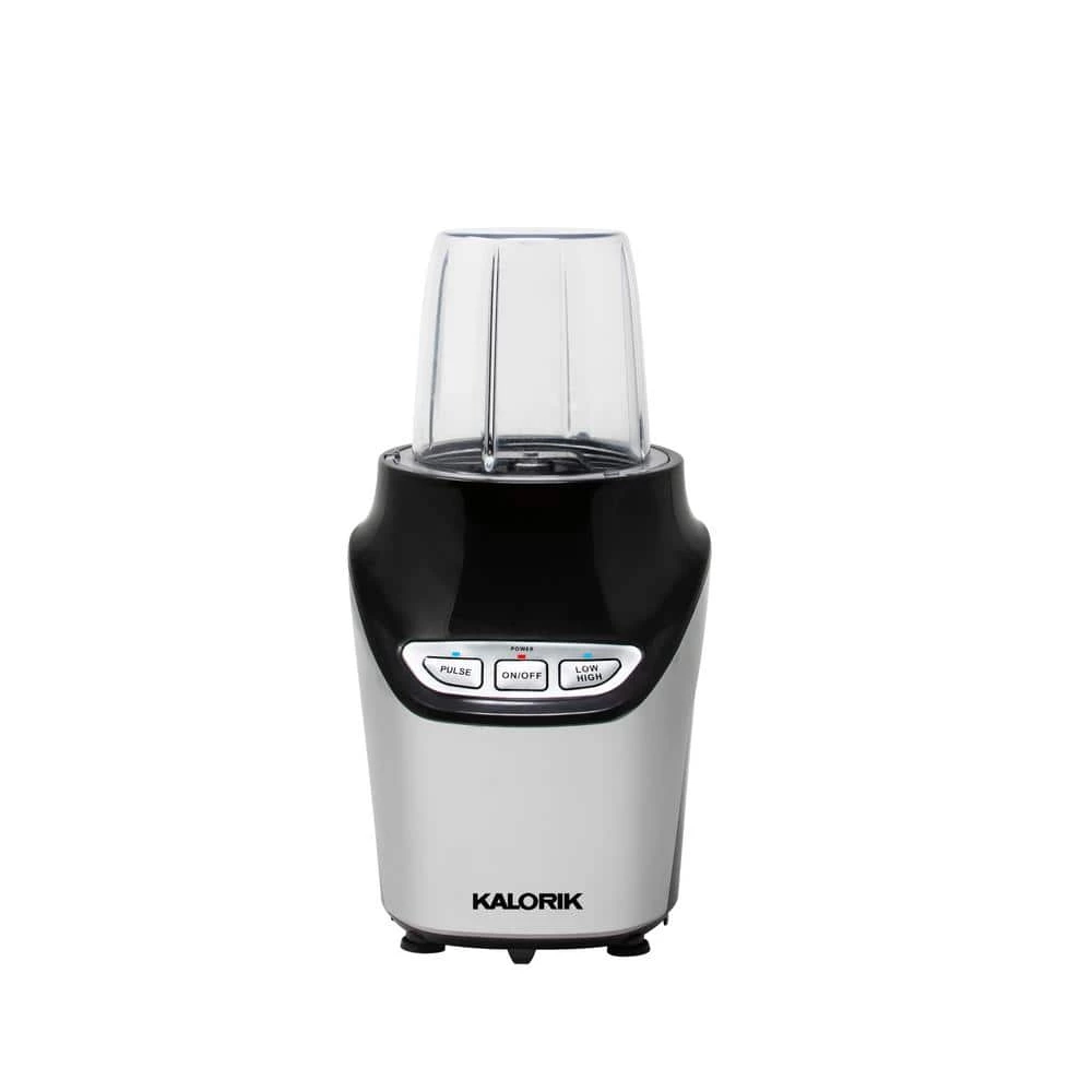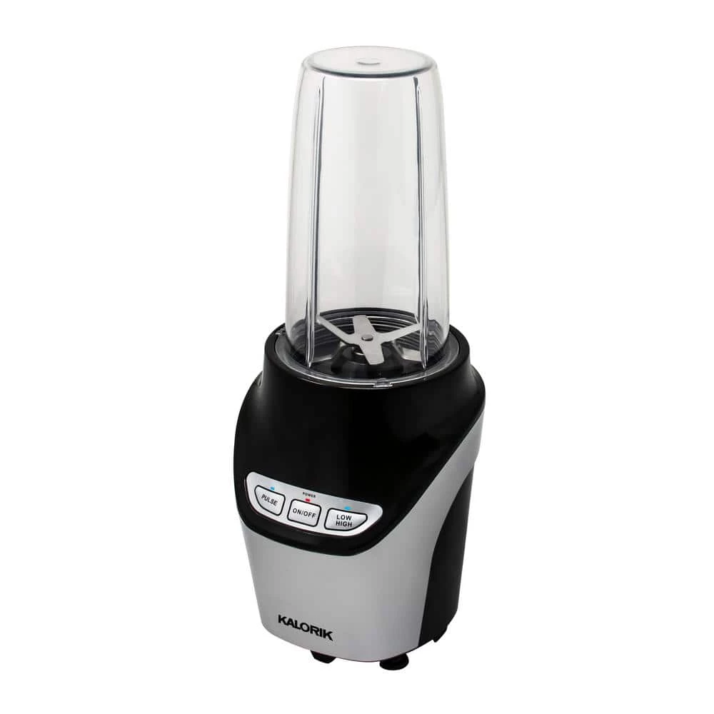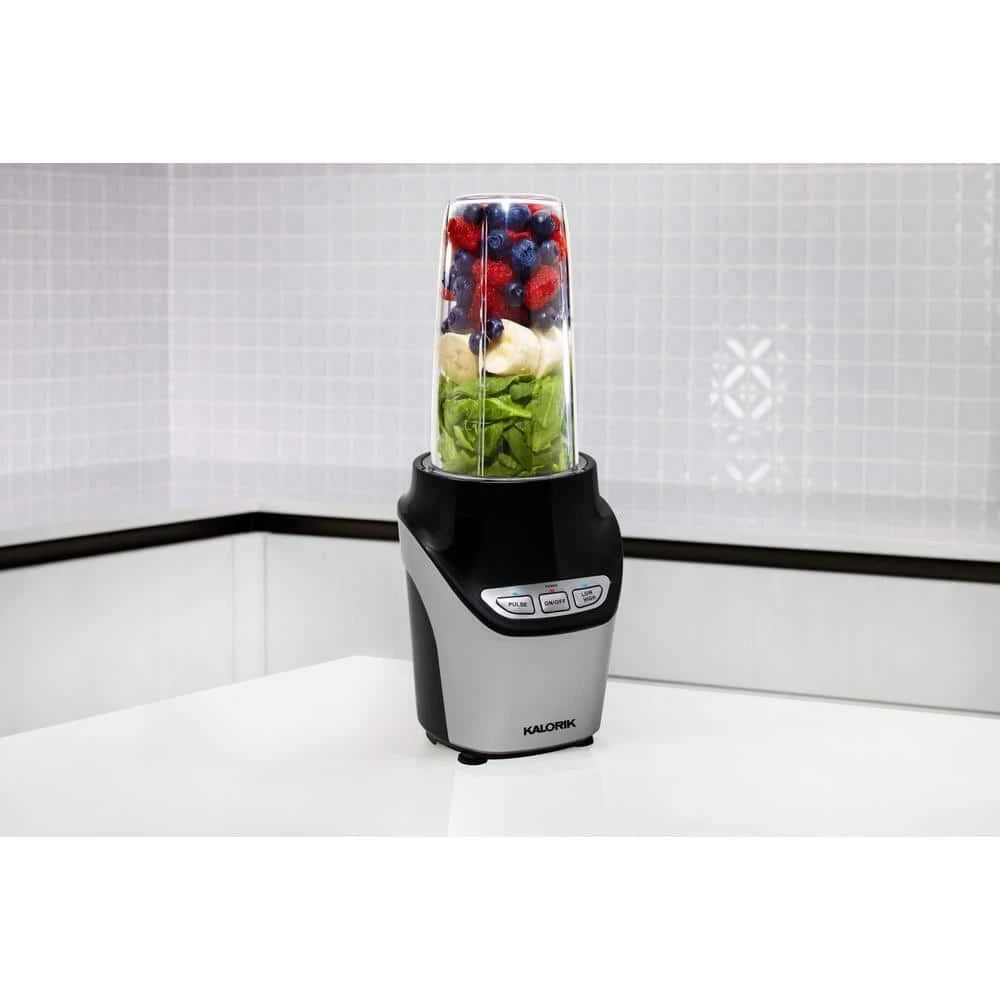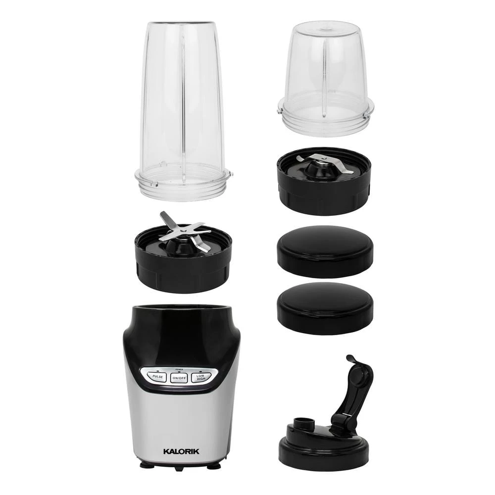 Discover how 1000-Watts of pure blending power will complement your healthy lifestyle with the Kalorik 8-Piece Nutrition Blender Set. Featuring ultra-sharp stainless steel blades, the Kalorik Nutrition Blender extracts nutrients from foods to transform them into health-boosting superfoods. The Kalorik Nutrition Blender easily breaks down tough stems, seeds and skins of fruits and veggies to maximize vital nutrition. This high-powered blender delivers superior performance, effortlessly crushing ice and frozen ingredients. Make delicious smoothies, shakes, hummus, soups, salsas, sauces, dips, salad dressings, nut butters, frozen cocktails and more. This multi-use 8-piece blender set comes with one 6-piece cross blade optimized for blending, and one flat blade for grinding coffee and spices. The set includes two seal lids, one flip-top lid for on-the-go, one (34 fl. oz.)-cup, one (15 fl. oz.)-cup, a flat blade, a cross blade and a motor base. The Tritan-cups and lids are BPA-free, while the set’s dishwasher-safe parts make for fast, easy cleanup.