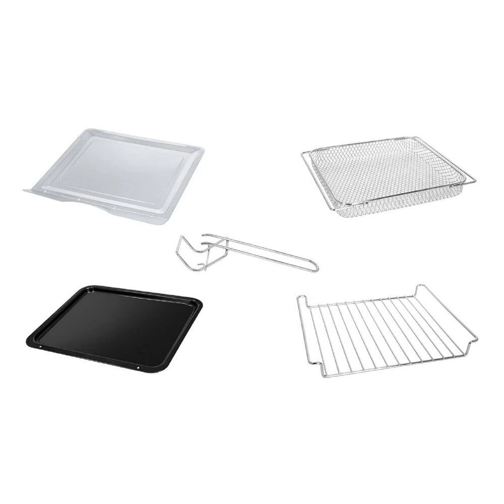 - Accessories include: air frying basket, air rack, baking tray, crumb tray, and tray handle