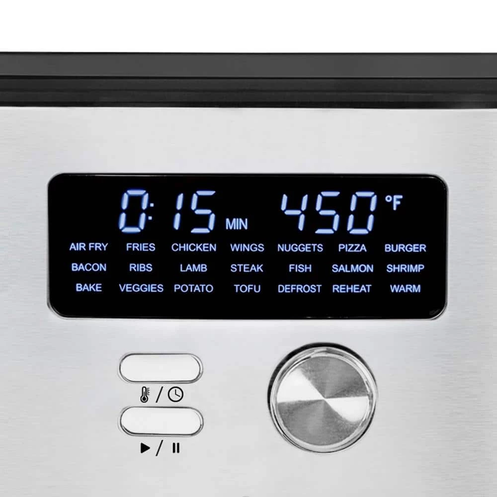 - Multifunctional air fryer lets you air fry, bake, roast, broil, defrost, reheat, and warm meals at the touch of a button