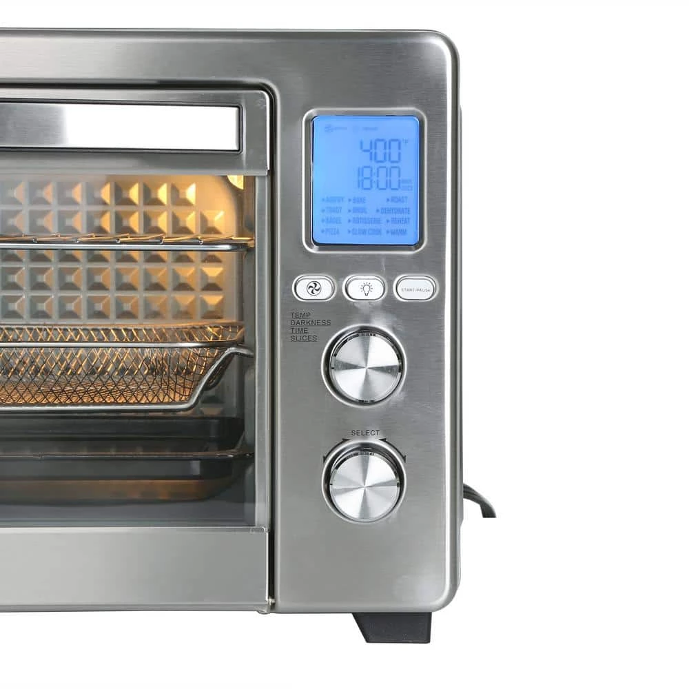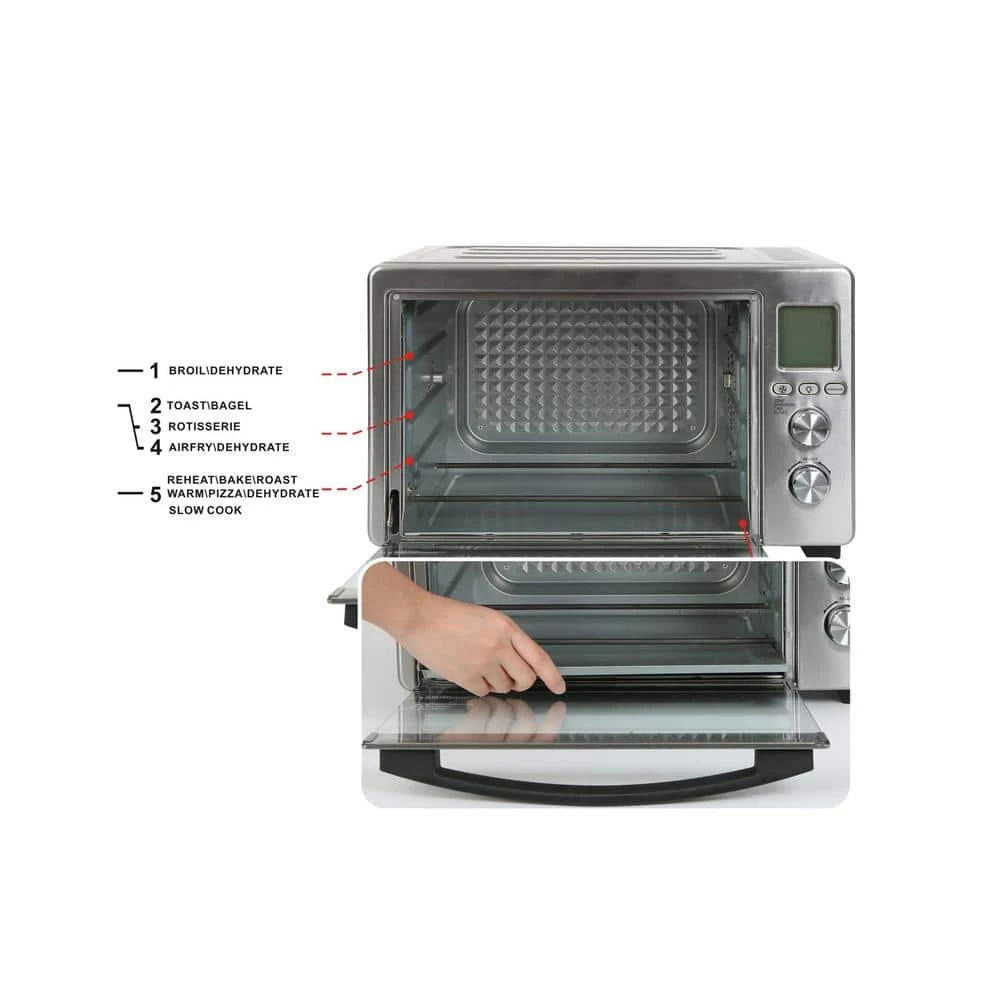 - Large capacity: with its 33.8 qt. large capacity, there is enough space to contain 6-slice toast, a 4.5 lbs. of whole chicken, or a 12 in. pizza, it’s perfect for making large batches of food to serve the whole family or even for your guests, it also comes with a cookbook with various sumptuous recipes you can try for the family
