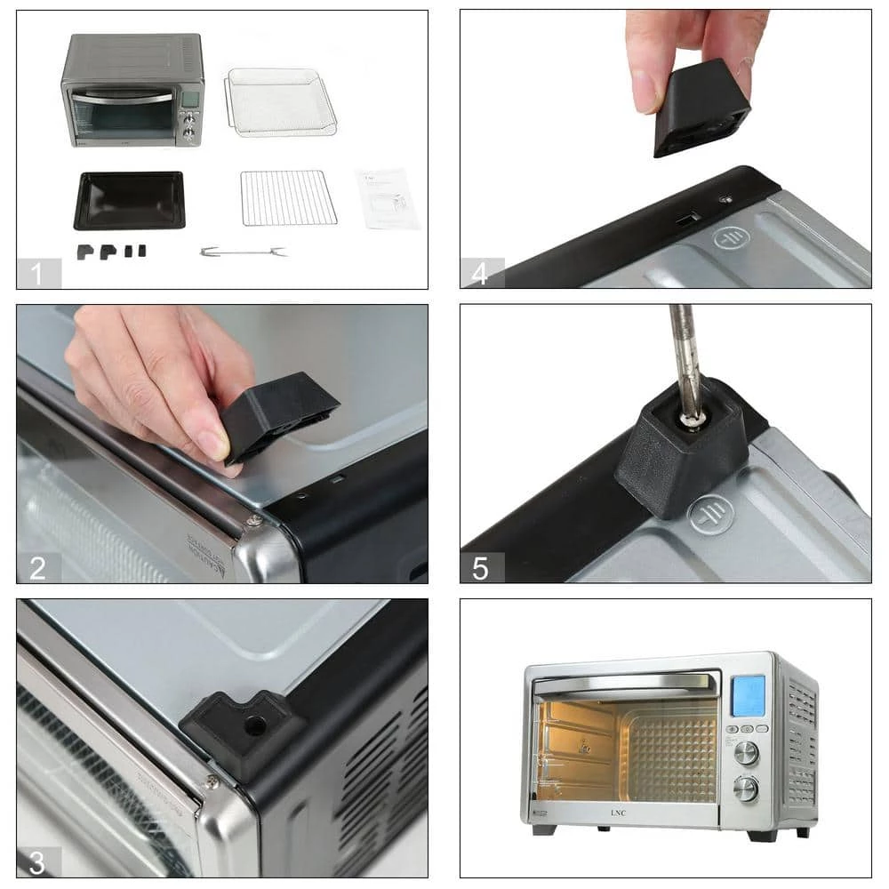 The LNC innovative air fryer oven would be a functional all-in-one kitchen appliance to replace your traditional appliance, including a deep fryer, microwave, toaster, convection oven, dehydrator, slow cooker and more. With multi-functions mode preset, you could make any of your favorite meals like wings, fries, chicken nuggets, beef, fish, pizza, snacks, veggies or dehydrated fruit, etc, in less time and with less oil to reduce the number of calories in almost every meal. This oversize 33.8 liquid quat capacity air fryer toaster oven allows you to cook multiple dishes or more of your favorite for the whole family or all your guests.