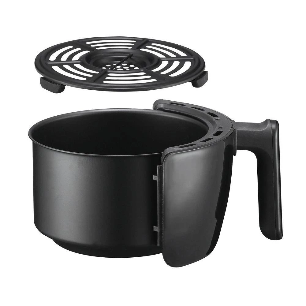 - Compact size: the PFOA/PTFE free non-stick pan and rack hold 2.1 qt. or up to 1.5 lbs. of food perfect for personal use or when cooking for a few, cook faster and more safely than in oil, eliminating splatter burns and reducing electricity use