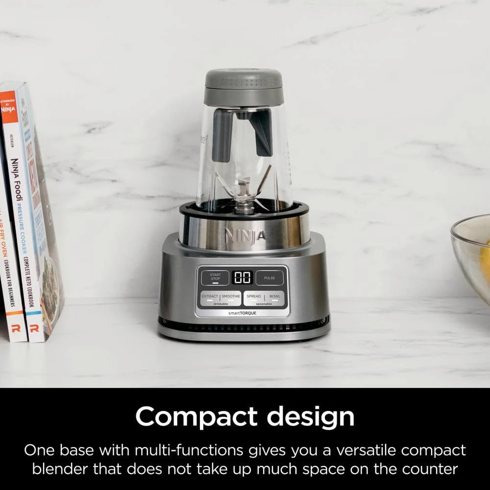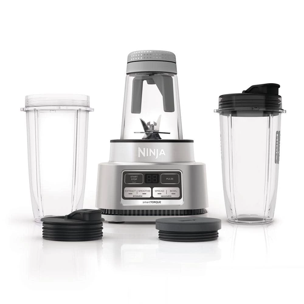Ninja Foodi Smoothie Bowl Maker and Nutrient Extractor with smartTORQUE is designed to blend and power through the thickest ingredients at high speed and never stall. 1-base with multi-functions. The Ninja Nutrient Extraction Cup and Spout Lid for smoothies and extractions. The Smoothie Bowl Maker with built-in tamper powers through frozen foods with less liquid for thick smoothie bowls and nut butters. 1200-peak-Watt power-dense motor.