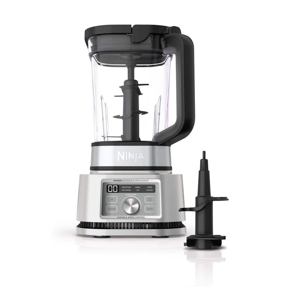 NINJA Foodi Power Blender and Processor has Variable Speed Control with smartTORQUE to blend and power through at any speed and never stall. The Power Blender and Processor Pitcher has the versatility of a blender, food processor, and dough mixer in 1. 1400-peak-Watts.