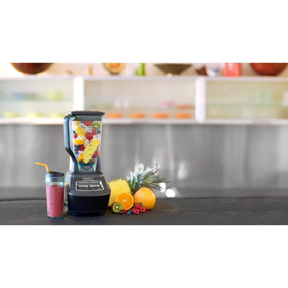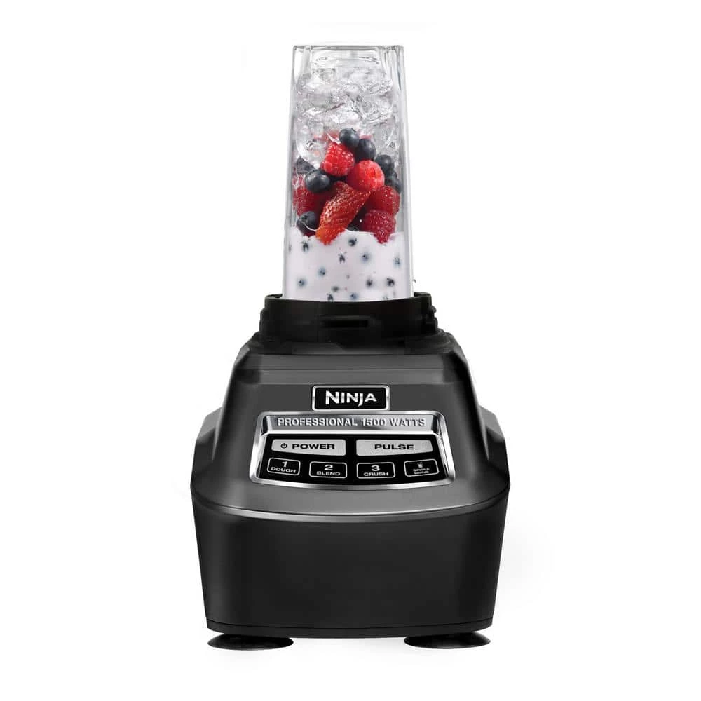- Includes 1500W motor base, 72-oz. total crushing pitcher, 8-cup food processor bowl, dough blade, (2) 16-oz. Nutri Ninja Cups with to-go-lids, inspiration guide, instruction book, and quick-start guide