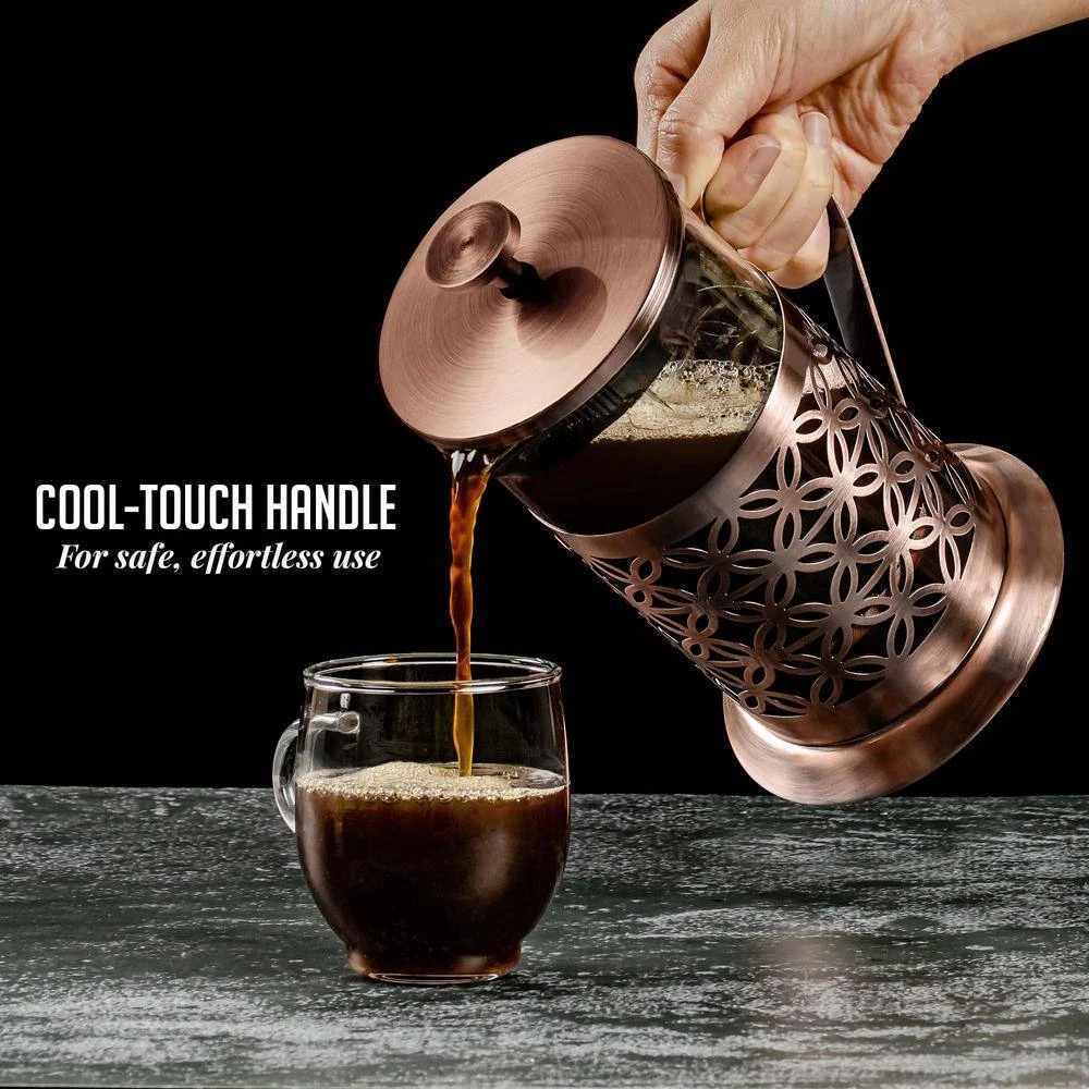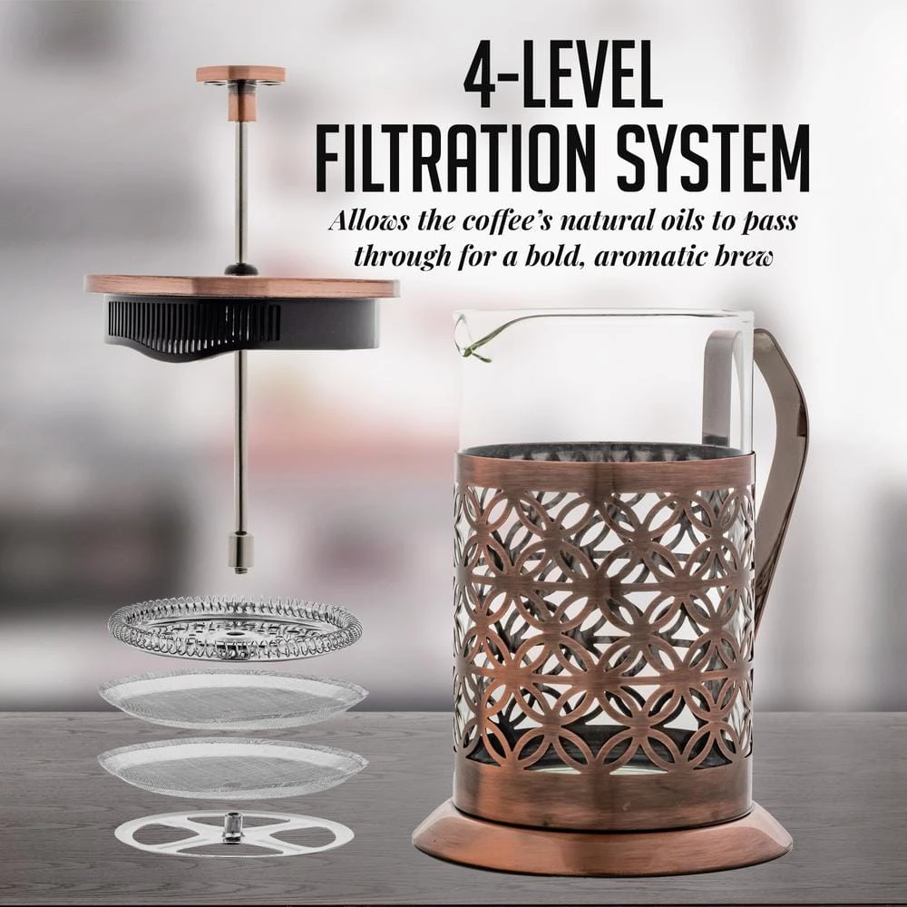 - High-Quality Durability – Each French Press comes with a heat-resistant and temperate borosilicate glass carafe a high-grade stainless steel protective layer and a 4-level stainless steel plunging system with a mesh filter for fine filtering.