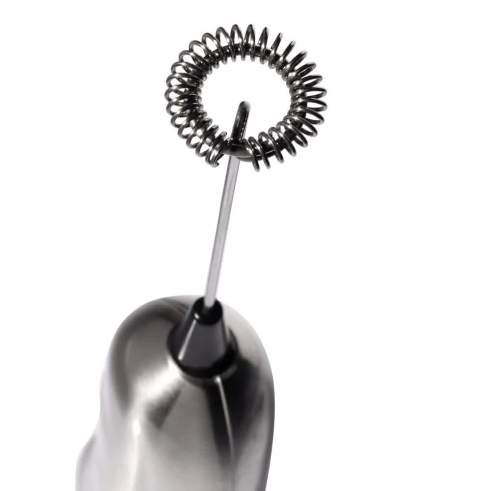 Petite yet powerful, the Ozeri Milk Frother whips up delicious and picture perfect foam in as little as 10 seconds. Perfect for steam-free cappuccinos, lattes, espressos, hot chocolates, shakes, frappes and other drinks, frothing has never been easier than with the Ozeri Milk Frother. The powerful motor in the Ozeri Milk Frother spins at over 15,000 RPMs and activates instantly with results in 10 to 20 seconds. The Ozeri Milk Frother foams all kinds of milk (whole/regular/skim milk, soy milk, almond milk and coconut milk) alike for fluffy hot cafe lattes or cold chocolate malts in seconds. The Ozeri Milk Frother ships with 2 milk frothing whisks, an egg beater attachment that can be used to whisk eggs, soups, dressings, sauces and other non-solid food items and a propeller-shaped attachment that can be used to mix cocktails. Also includes 2 AA batteries. Your satisfaction is guaranteed.