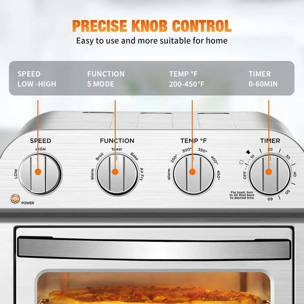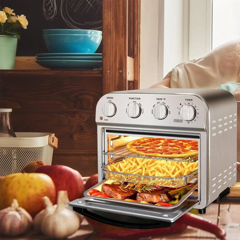- Healthy, powerful: etl listed for safety, 1500 w strong power makes super efficient to cook food in the healthiest way by cutting over 85% of fats, the large glass viewing window and the inner oven light make it easy for you to see what is happening in your kitchen