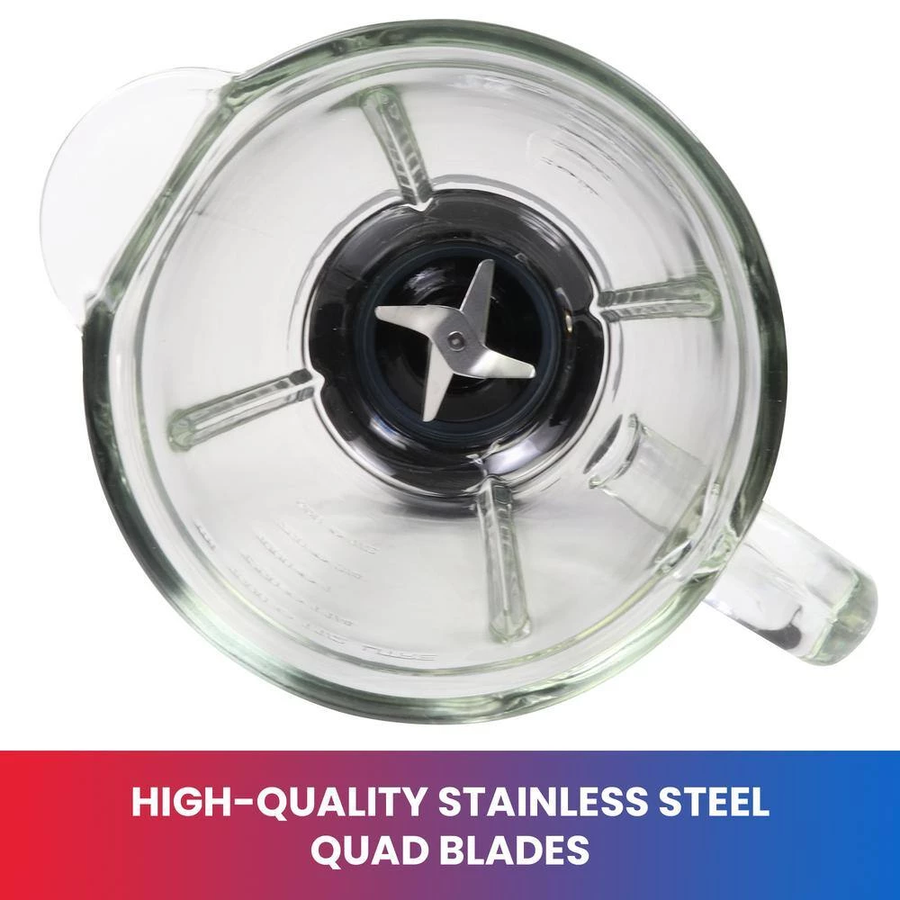 - 51 oz (6 cup) glass pitcher with raised volume markings