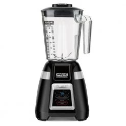 The Waring BB320 Blade Series 1 HP Blender has you covered when your bar is busiest. Make three 16 oz. margaritas in 12 seconds. Its 2-speed, powerful 1 HP motor and electronic touchpad controls feature ON/OFF, LOW, HIGH, PULSE and STOP. A removable, rubberized jar pad dampens sound and makes cleanup easy. Stackable 48 oz. copolyester jars make storage a snap.